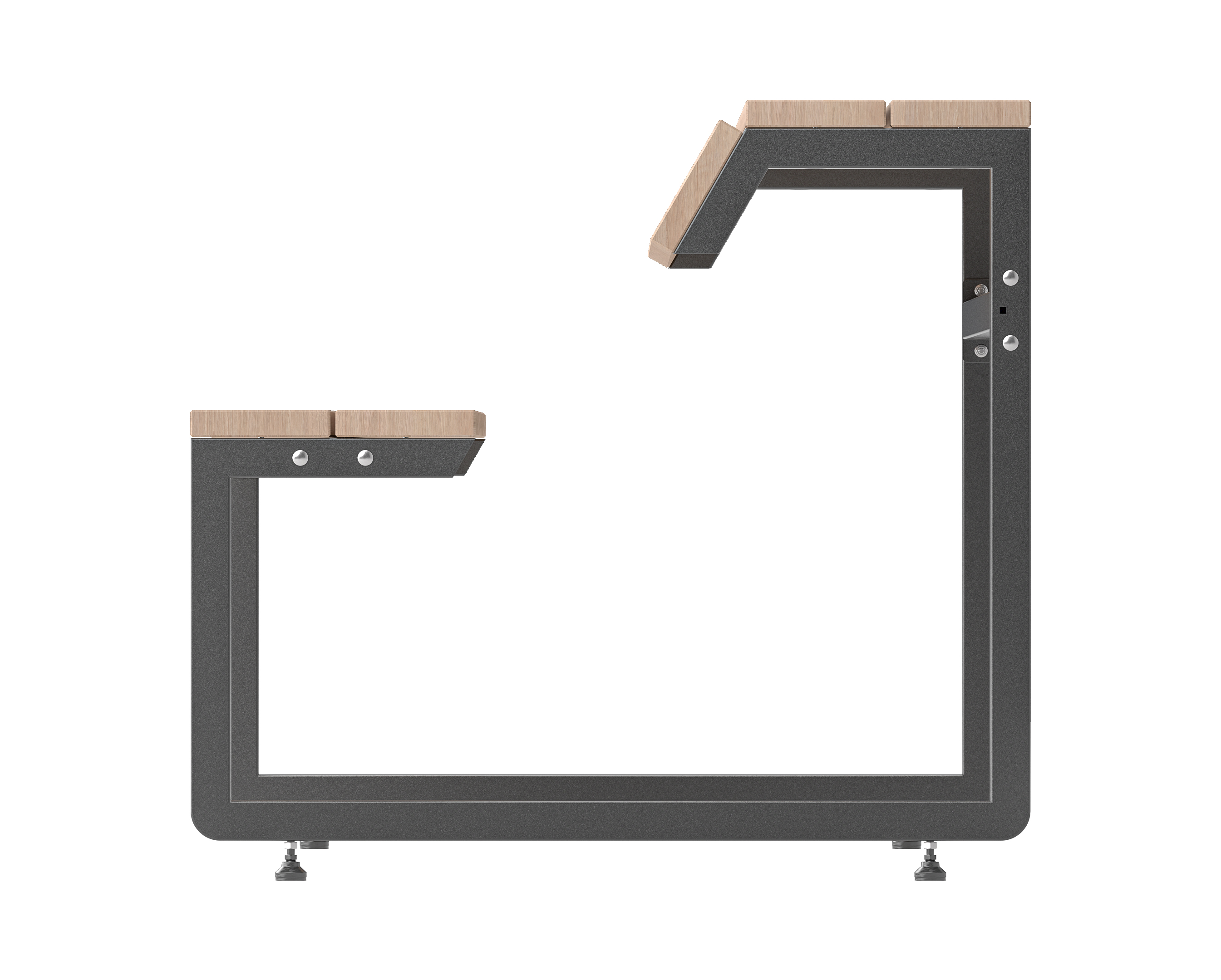 - Stellfüße sorgen für einen Ausgleich bei unebenem Boden und verhindern das Verkratzen des Gestells
